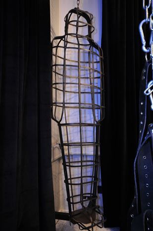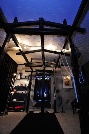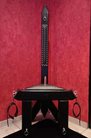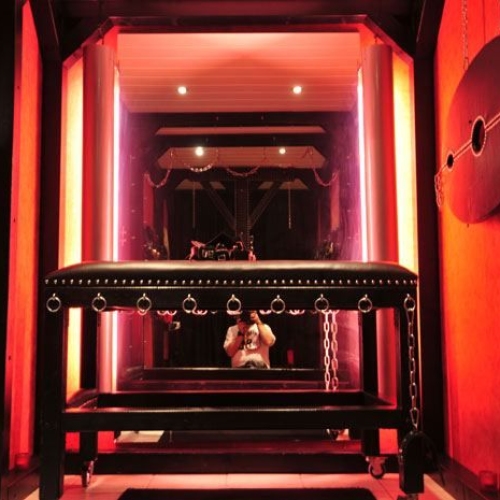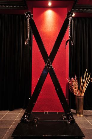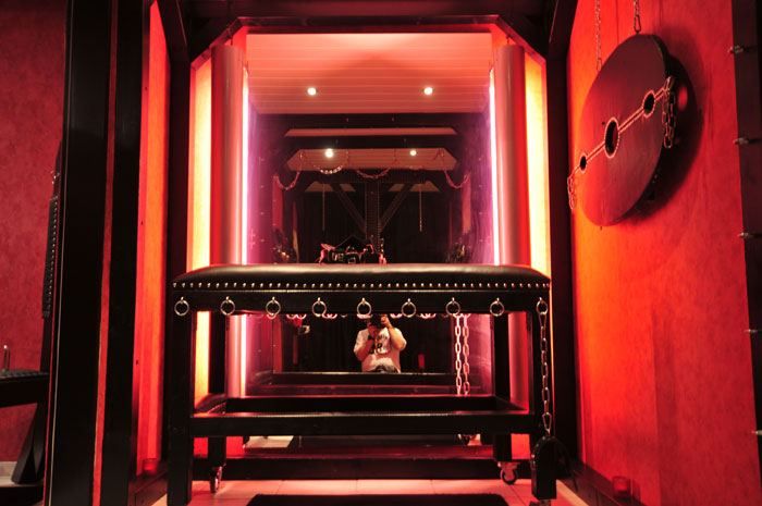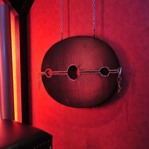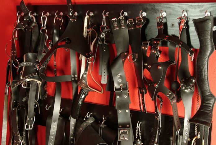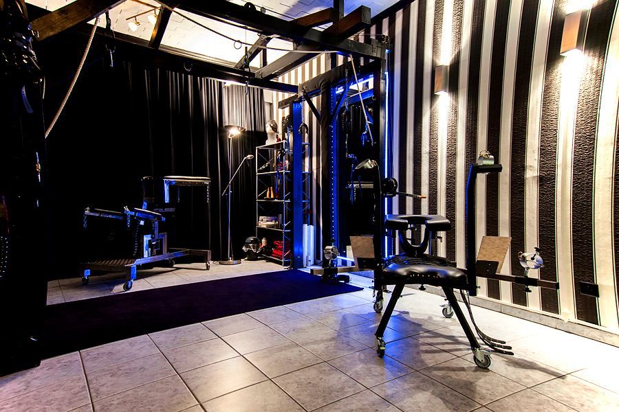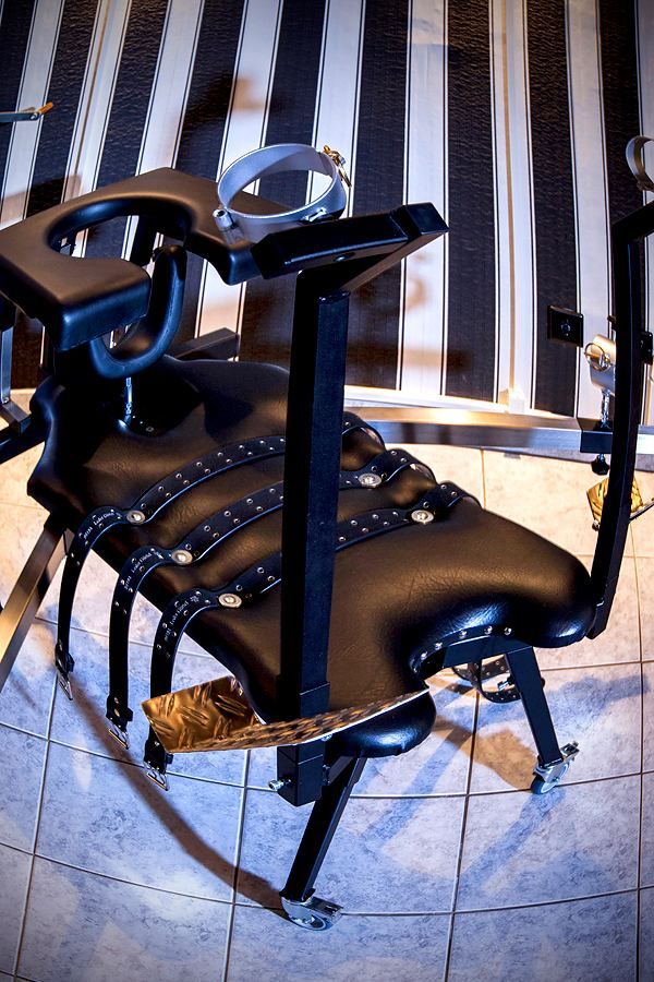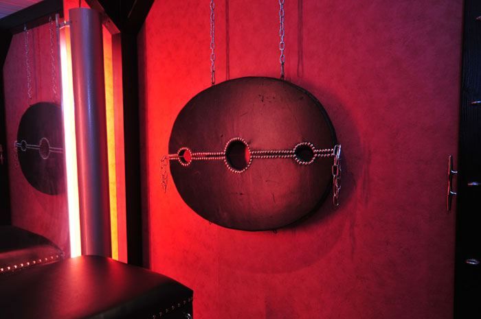 Ausgestattet je nach Themenbereich sind die stilvollen Räume mit Andreaskreuz, Bock, Stand- und Hängepranger, mittelalterlicher Sitz- und Liegepranger, Strafstuhl, mehrere Flaschenzüge, Fesselgerüst, Liebesschaukel, Lederhängematte, Ledergeschirre und Lederfesselsack zum Aufhängen, Spreizstangen, Bondagevorrichtungen, Streckbank, hängenden Käfig in Körperform, Eckkäfig, amerikanisches Fesselgerüst zur absolut, bewegungslosen Fixierung, schalldichter Strafschrank, NS-Stuhl, Lederfesselbett, Fesselstuhl mit intrigiertem Zubehör für Fixierungen in mehreren Stellungen.