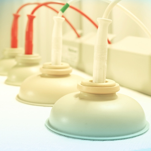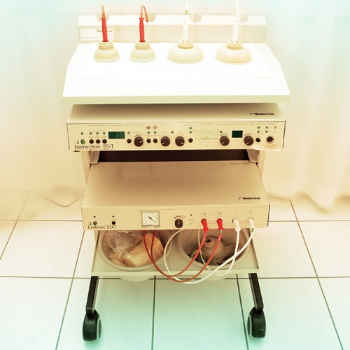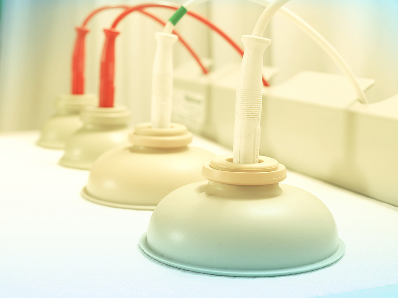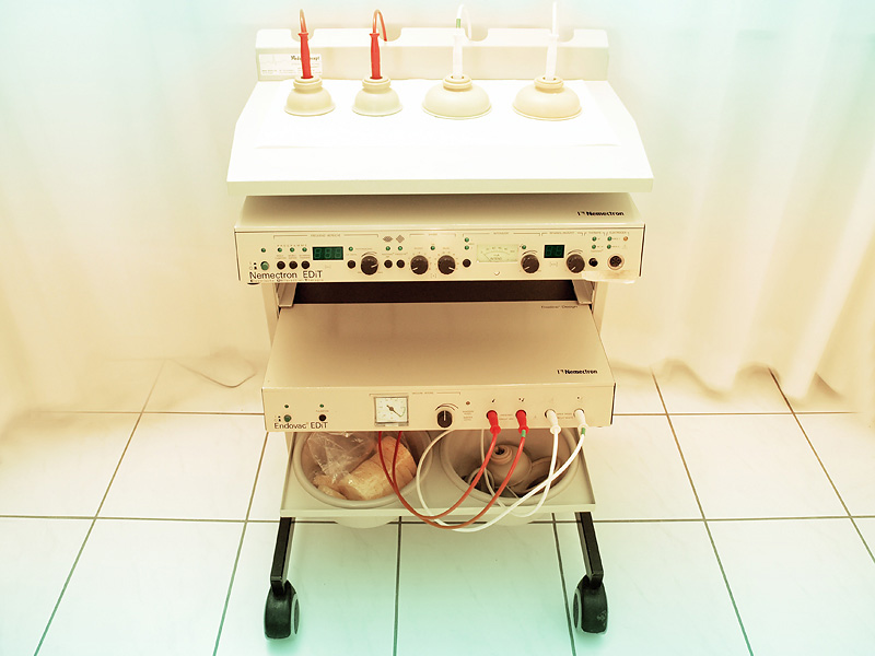 Mittels 4 Saugschalen in unterschiedlicher Größe wird eine Vakuum– und Saugbehandlung durchgeführt.